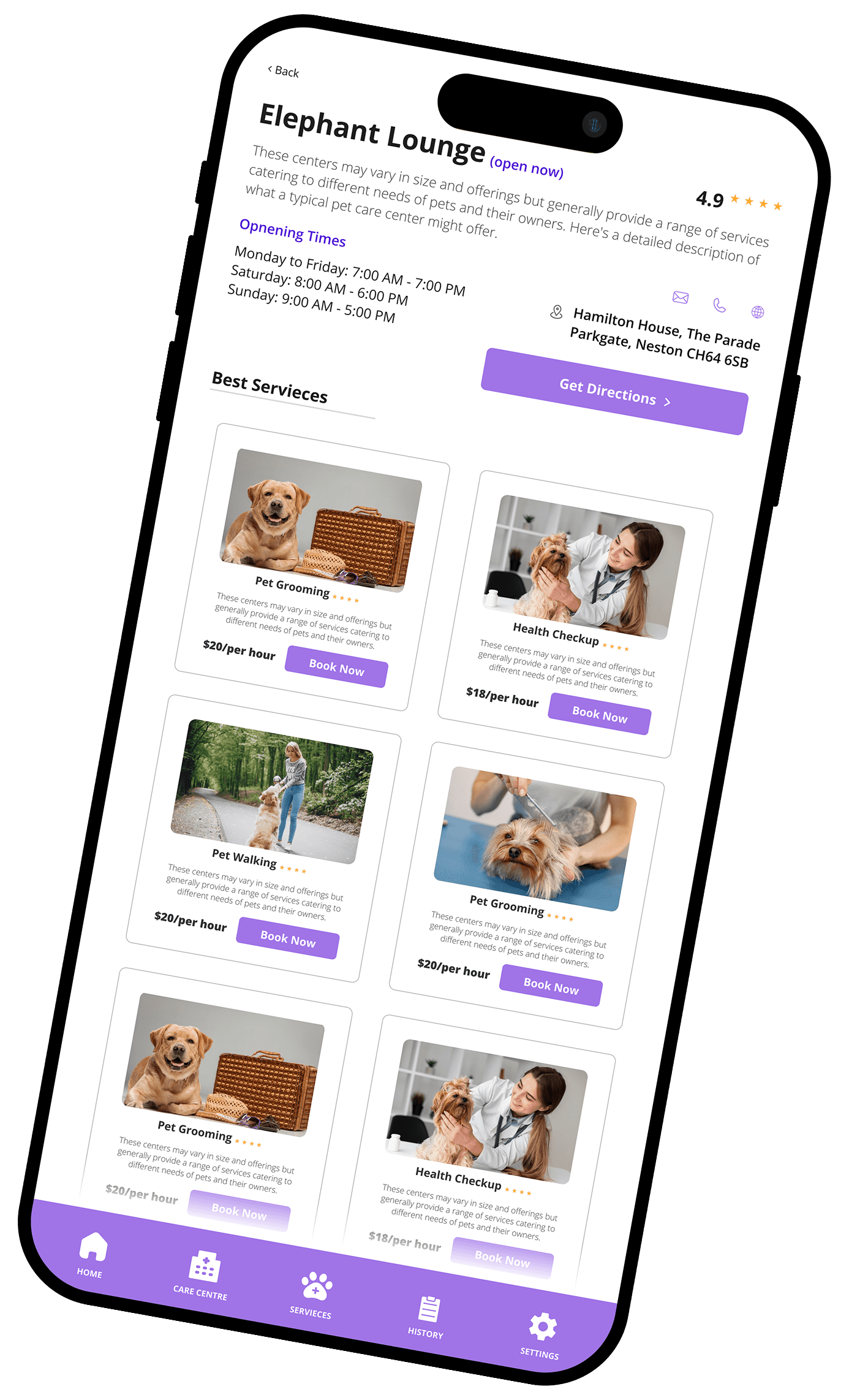 Offer seamless grooming and spa bookings through feature-rich apps that let users schedule, manage, and review pet grooming sessions with ease.